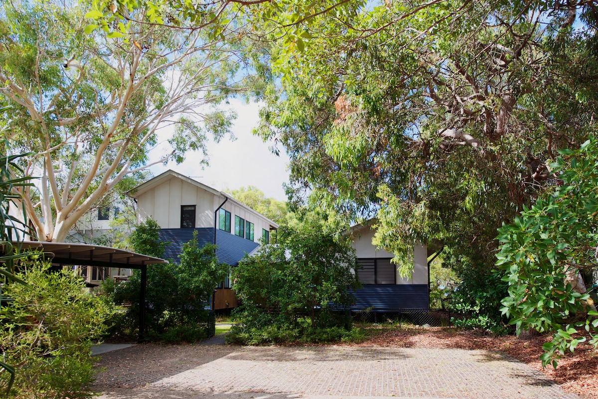 Submerge into island life in this family home that transforms into a vacation rental during the holiday season. Situated just 300m from Adder Rock beach, Yin-ila offers a pause from the hustle and bustle with its considered design, natural light, tropical garden aspect and easy access to the sparkling sea. Location- Our picturesque island home is located at Point Lookout, where we are spoilt for breathtaking beach choices, abundant wildlife and bushland as well as other neighbouring islands.
