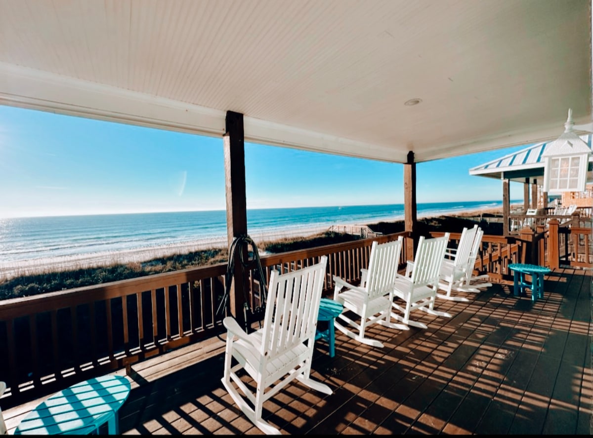 Escape to Paradise on Topsail Island! -Come stay at our charming beach house, just steps from the sand and surf. Whether you're sipping coffee on the deck or watching the sun rise over the waves, you’ll love the unbeatable ocean view and perfect location -Direct beach access – no roads to cross -Stunning, uninterrupted ocean views - Private outdoor spa as well as all linens provided -Walking distance to downtown shops, restaurants and the pier -Family-friendly and full of nearby activities