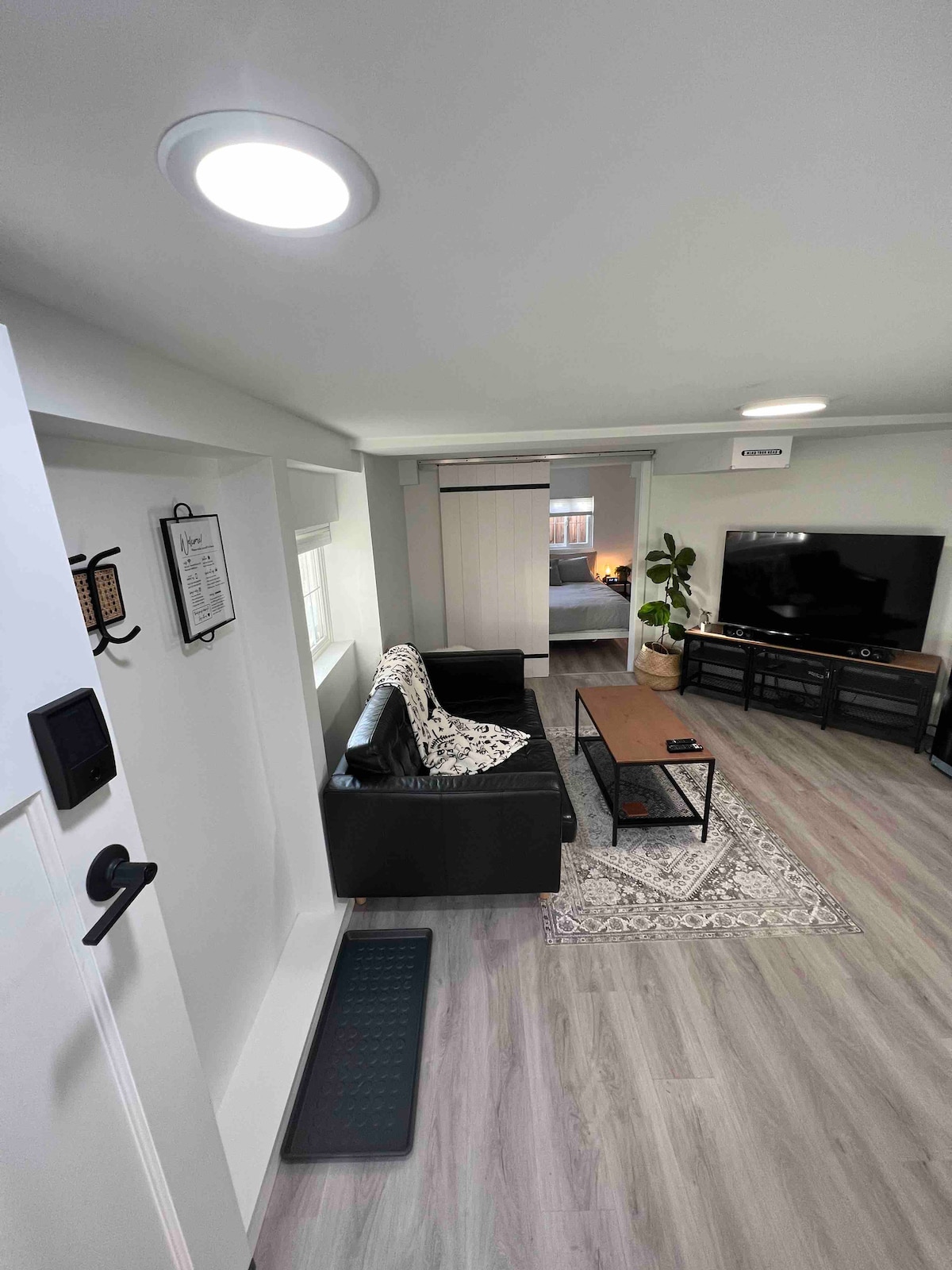 Welcome to your comfortable 1-bedroom 480 sq ft. basement suite in vibrant Central Lonsdale, one of Vancouver's most desirable neighborhoods. Perfect for travelers seeking a quiet place to rest, this private suite offers a comfortable queen bed, living area with a TV to stream your own subscriptions and modern bathroom. While there is NO COOKING, we do offer a microwave, small fridge, a kettle and coffee station. you will love the shared garden and being steps away from shopping and restaurants