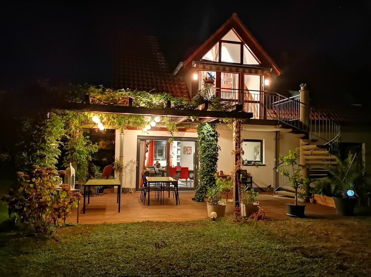 A 10 minutes 🚙 du centre ville de Strasbourg🥨, un cocon de calme 🏡et de verdure 🌼vous accueille, pour vous reposer🛀 et vous ressourcer🧘🏻♀️. Petit déjeuné compris ☕🍞🥐🥖🍒🍓. Massages 💆🏻, baby-sitting👶, linge🧺 (par pro en supp.) Une place de parking sécurisée, transports en commun🚌🚎. Gare de Bischeim à 4 minutes à pieds. Wacken 8min 🚙 Parlement Européen 10 min Conseil de l'Europe 13 min Espace Européen de l'Entreprise 8 min Europapark, Haut-Koenigsbourg, montagne des singes, volerie des aigles 1h.