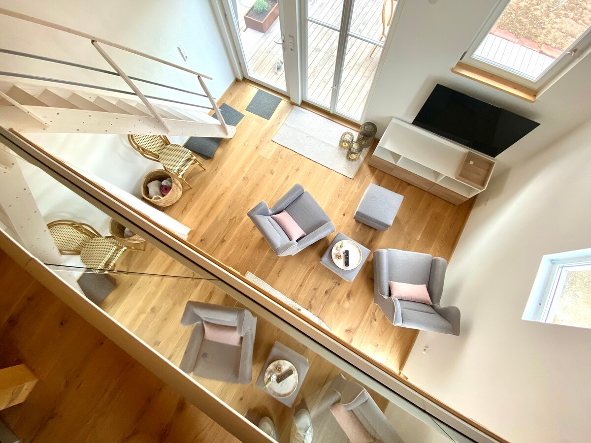 Komfortables Ferienhaus für Gäste mit besonderen ästhetischen und ökologischen Ansprüchen, zertifiziert als Mountainbike-freundliche Unterkunft und bei Bett+Bike Sport! Der Wohnraum erstreckt sich über 2 Etagen, die über eine freitragende Holztreppe miteinander verbunden sind. Der pure Luxus zu zweit, ideal für Familien. Die 4-Sterne-Zertifizierung vom Deutschen Tourismus-Verband bezieht sich auf bis zu 4 Personen; nach Vereinbarung zusätzliche Kinder und weitere Gäste möglich.