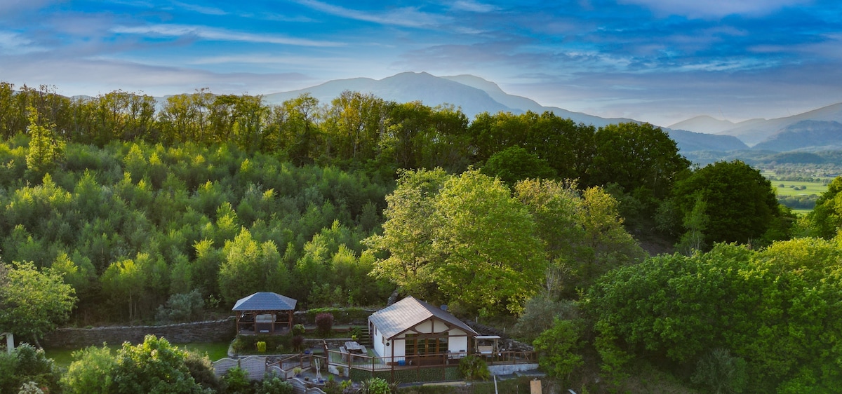 A cozy quirky modern unique chalet hidden in an elevated position in the beautiful Snowdonia in Penrhyndeudraeth. Home to Snowdonia National Park Headquarters. Please check out our guest reviews. Nearby, approx 100 meters a two minute stroll, Penrhyn Station where you jump on the Ffestiniog Railway. ZIP world Blaenau Ffestiniog is only 15min away. Snowdon Pyg Trail 25min. 5minutes drive away is the famous Italianate village, Portmeirion. Harlech Castle 10min. A warm Welsh welcome awaits!