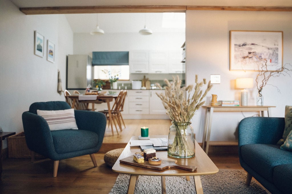 Set beside the apple orchard at The Old Sheep Farm in Eryri National Park (Snowdonia), The Hayloft is a dog-friendly, one-bedroom crog-loft hideaway a short drive from the coast. Exposed beams, a wood-burner and a freestanding roll-top bath give the cottage a warm, settled feel, while stunning views stretch across the hills towards the sea. A calm, characterful and luxurious place for slow mornings, long walks and unhurried stays.