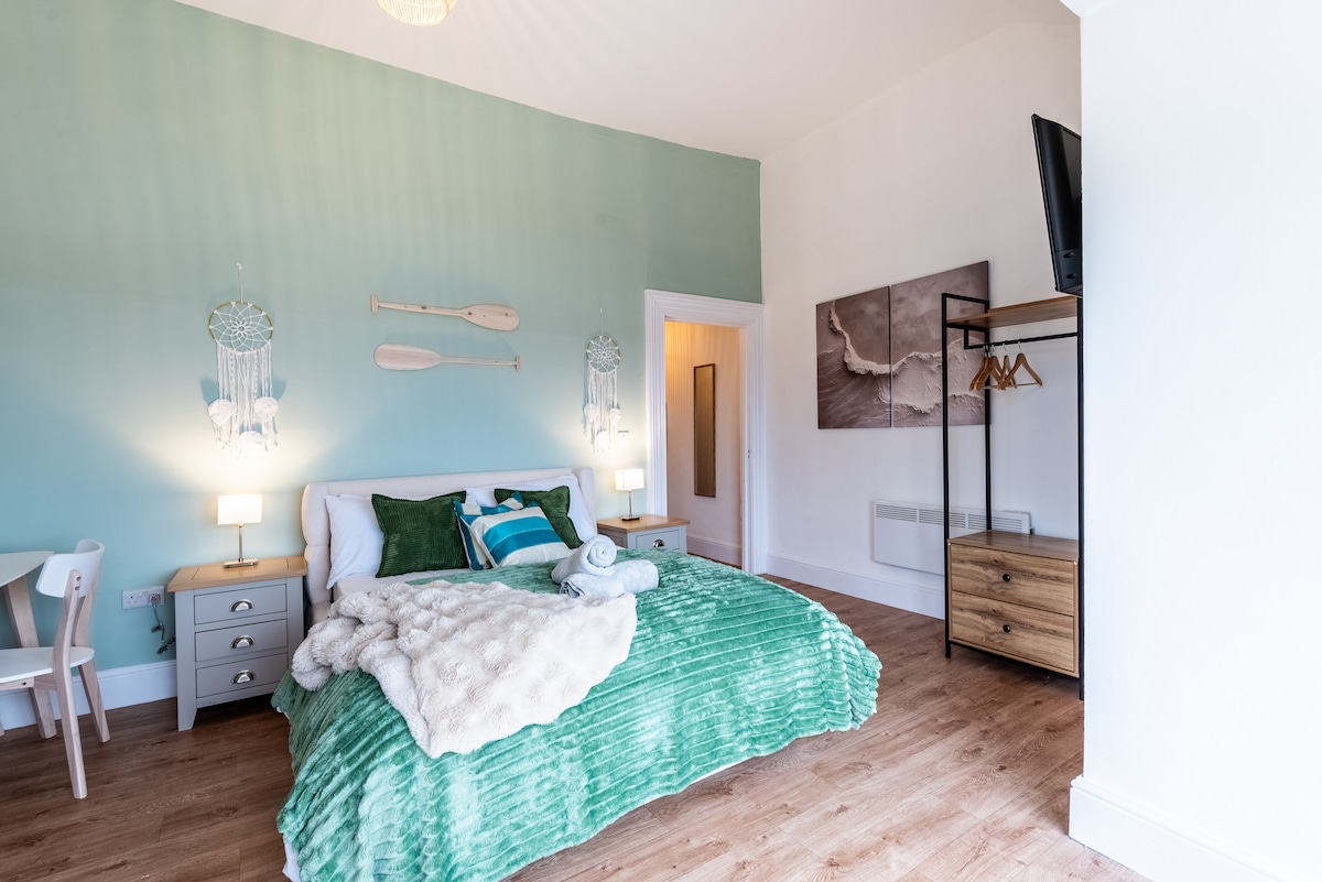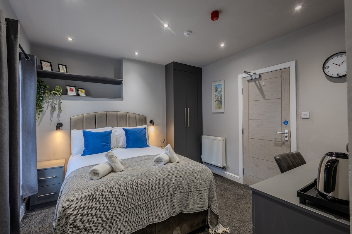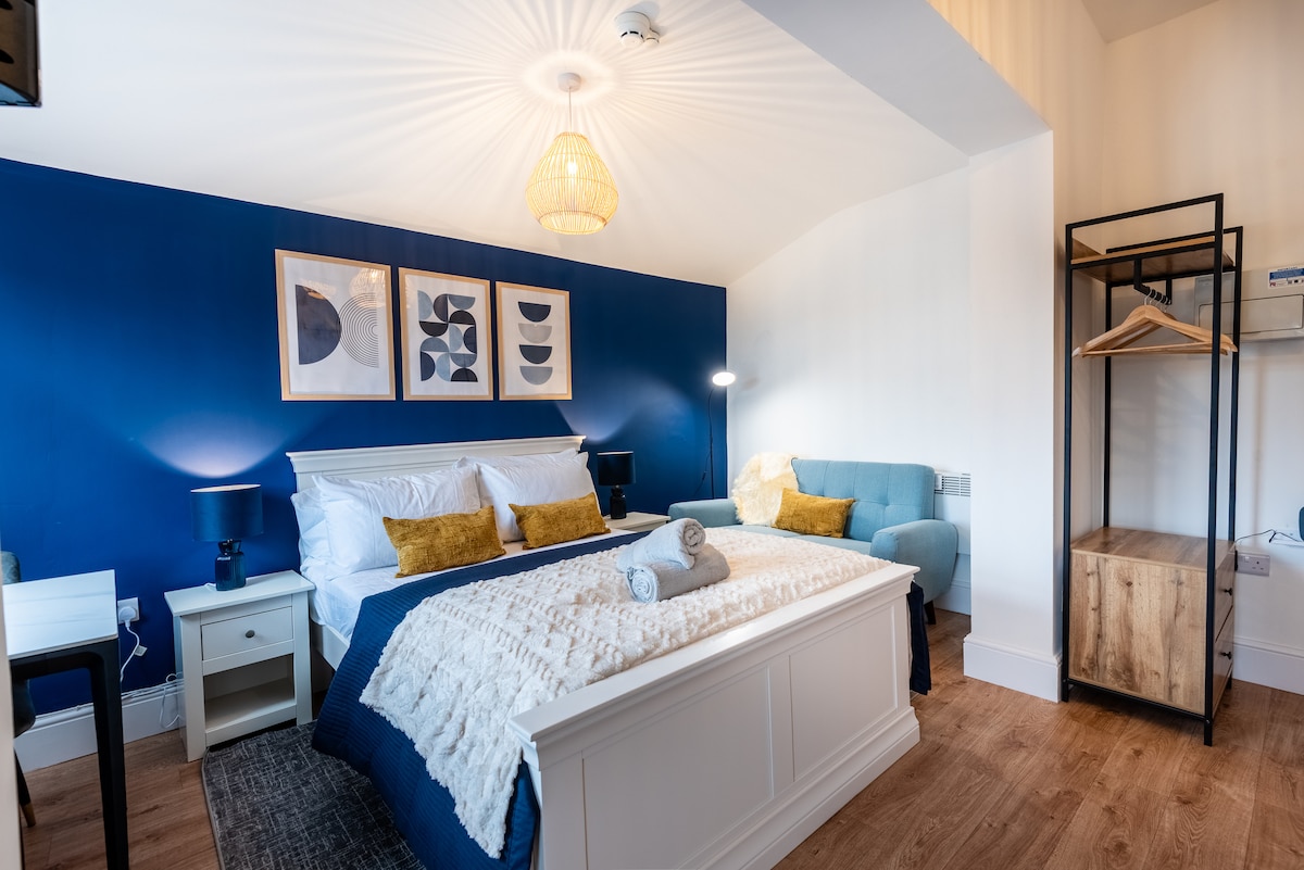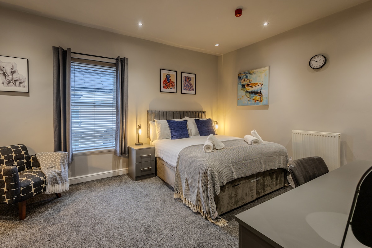 Experience comfort and style in our King Bedroom, designed with a modern yet cozy aesthetic for a relaxing stay in the heart of Liverpool. Spacious King-size bed ,practical amenities including dressing table with an ornate mirror, and a comfortable armchair. En-suite Bathroom Access Perfect for solo travellers or couples, this room combines luxury, comfort, and functionality for an unforgettable stay.
