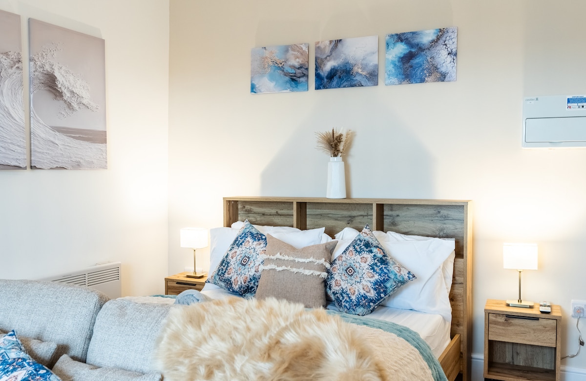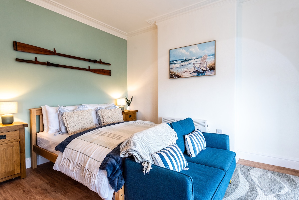 This warm and inviting studio is the perfect base for exploring Liverpool's city centre. With a double bed, a sofa bed, a well-equipped kitchenette, and space to relax, it comfortably sleeps up to 4 guests. 🎉 Celebration packages available – prosecco, balloons, décor & special touches (available to request after booking) 🌆 Heart of Bold Street – walk to everything 🛏️ 1 double bed + 1 sofa bed (sleeps 4) 🏡 Homely, open-plan layout 🎟️ Surrounded by shops, restaurant