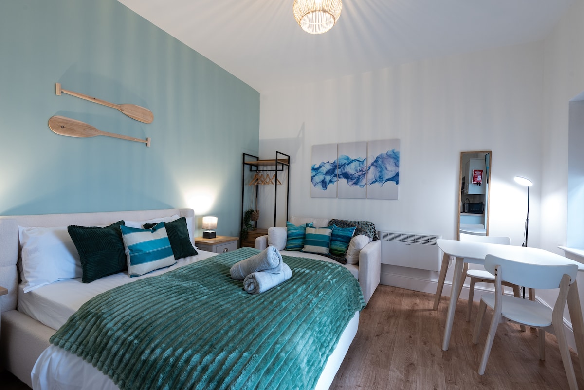 Located on the second floor of a characterful building on Bold Street, this studio offers a king bed, a sofa bed, and minimalist style. 🎉 Celebration packages available – prosecco, balloons, décor & special touches (available to request after booking) 🌆 Central Liverpool – steps from cafés, shops & nightlife 🛏️ King bed + sofa bed – sleeps up to 4 💻 Dressing table