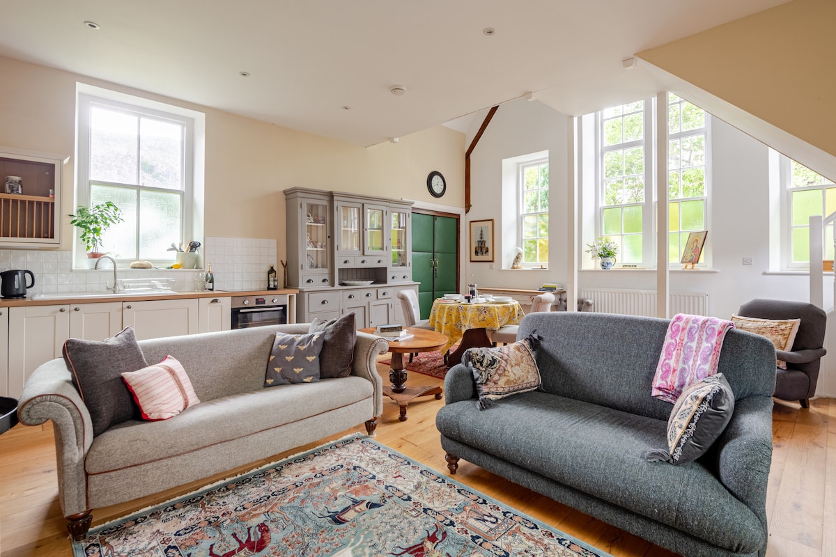The building was once a chapel vestry. Now a self-contained, large mezzanine guest suite. We are situated in the village of Beddgelert, close to Mount Snowdon. Our place is perfect for couples, small groups or families. We have one large living space with wood burning stove, comfortable seating, kitchen counter with amenities and dining area. Through the large windows you will have an excellent view of the top of Moel Hebog. Above this is a balcony with a double bed and a bathroom.