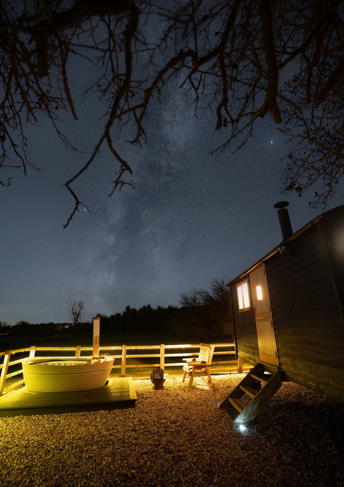 Experience the country in luxury, in a quiet setting overlooking the fields with the sea in the background, turn around and look at the rolling hills behind you. Listen to the stream that runs by the hut while sipping your favorite wine, in the hot tub with a book in hand. Come and enjoy a romantic getaway with your partner or a peaceful break away from the hustle and bustle of life. This shepherds hut offers you the comfort of home in a tranquil setting forget your busy life and breath.