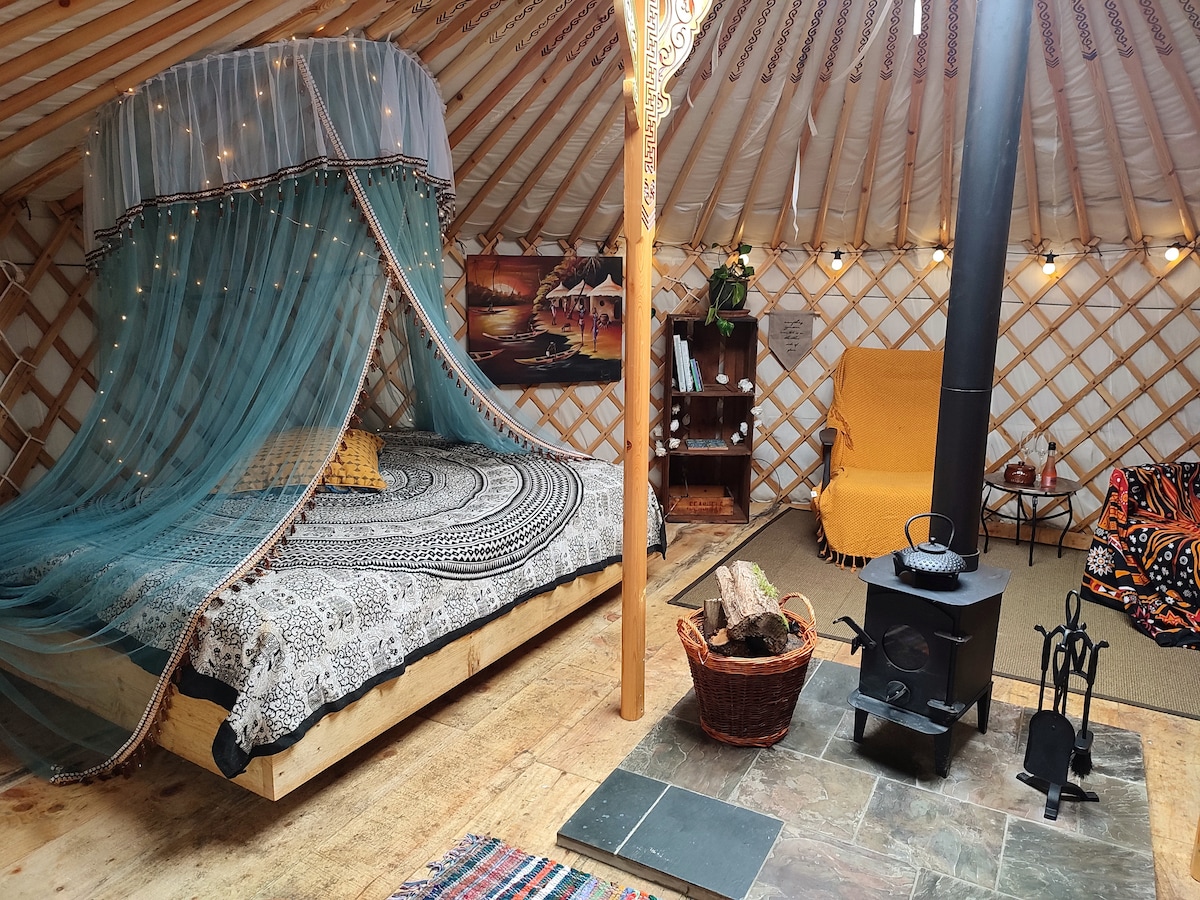 Sunbank Yurt,舒适、温馨的空间,配有原木燃烧器……