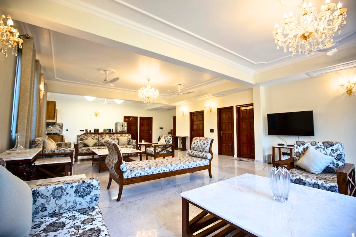 Attention: In peak season, place is booked very quickly! Experience unparalleled luxury in this exquisite South Delhi 3-bedroom floor in a house, in exclusive and gated Sainik Farms, located close to malls and Saket Metro Station. Bespoke Statuario Italian marble floors, hand-crafted furniture & spacious bedrooms with private balconies. Unwind in spa-like bathrooms with bathtubs, AI-based climate control, a fully equipped modular kitchen, and serene outdoor space.