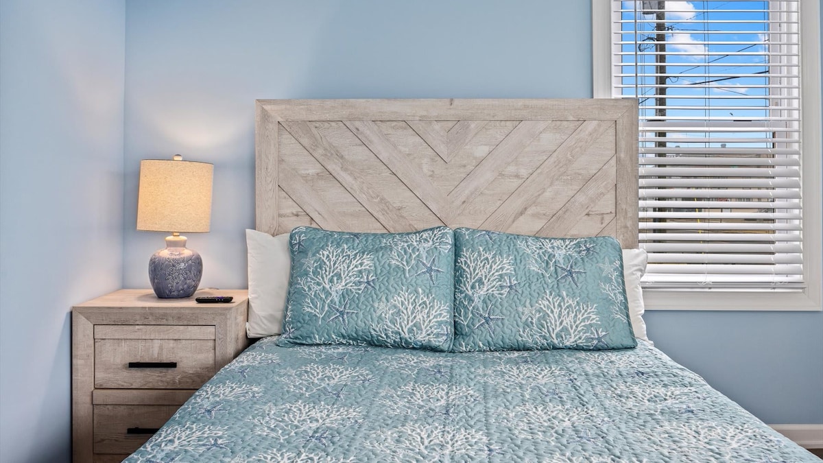 Our Sandy Crest Corner. This condo offers a beachy atmosphere that is welcoming & relaxing. The condo unit includes 2 Queen size Beds in 1 bedroom (most other units similar only offer a full size bed), modern bathroom and kitchen (nothing like those old motels), and a pull-out couch in the living room area. You can watch amazing sunrises viewing the beach from the window. You can hear the waves crashing with your door open. Includes some of the best views of Wildwood. Come stay with us soon!