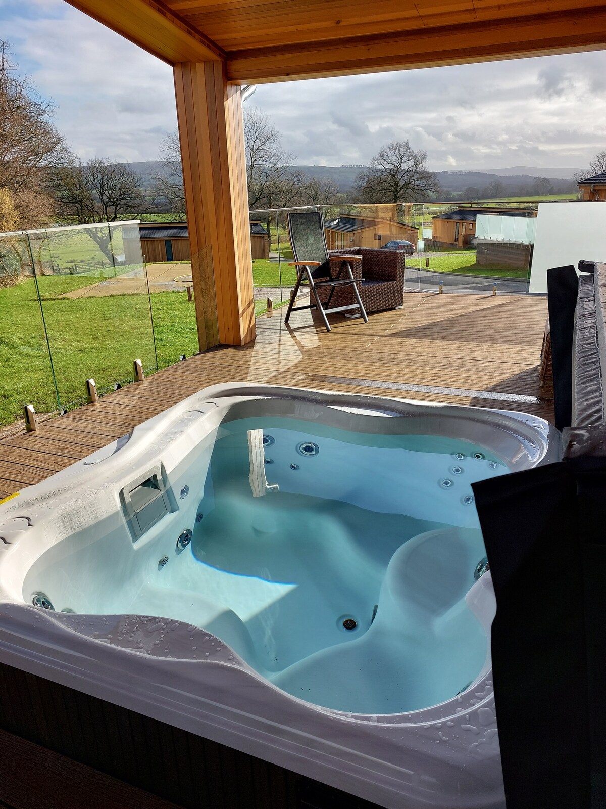 Oakley: 2 bedroom luxury lodge, hot tub & views.