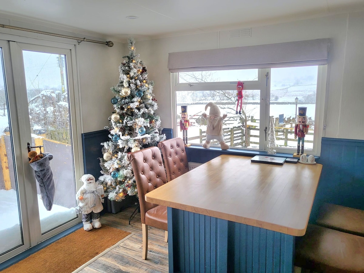 Honeysuckle Lodge is a Luxury Self Contained Air Conditioned Bijou Residence in an elevated position with Wood and River views on Waterside with Pubs & Cafes within 300 yards, The interior is dominated by a Large Glass Roof Lantern, Luxury Bathroom, The Main room has a King size bed, Small kitchenette, 55” Smart T/V, Spacious Decking area with Garden Furniture. Close to the Yorkshire Dales, with transport links to Harrogate & York, the station is 750 yds away