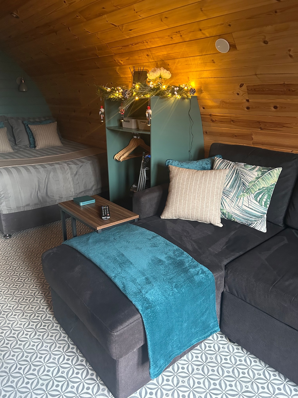 Set in the grounds of a grade 2 listed victorian gate house, cedar lodge offers modern luxury accommodation. Inside there is a double bedroom, with King size bed, shower room and living/kitchen area. Entertainment is provided by Bang and Olufsen widescreen UHDTV including streaming services. Outside is your own private patio area with a hot tub, BBQ and wood fired fire pit Great rural location for exploring hills and moors, coastline and market towns.