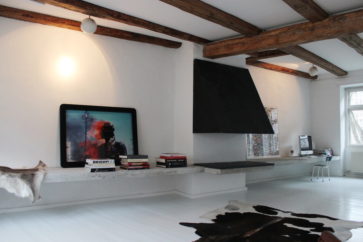 Velkommen til vores loft på Frederiksberg, der ligger centralt i København. Lejligheden har indbygget atelier med 5 meters loftshøjde og har tidligere huset kunstmalerne Per Kirkeby og Jais Nielsen. Per Kirkeby var vært for dannelsen af ABCinema.