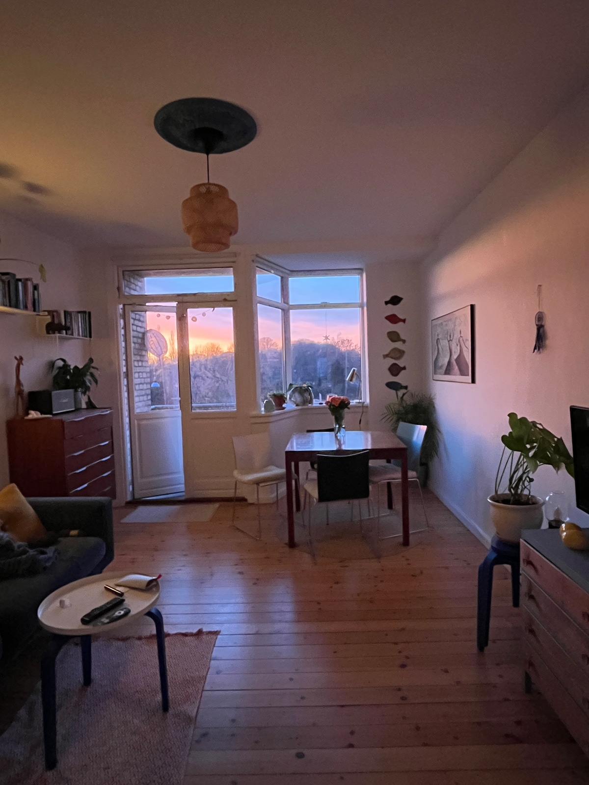 Welcome to my home. A crazy-cosy-cool 78m2 flat in the heart of Nørrebro on a quiet street only minutes walk from Sankt Hans Torv and the amazing Assistens Cemetary. Close to public transportation - 30 minutes from the airport. The flat includes a huge kitchen/dining room with a dishwasher and stereo, lounge with convertible sofa/bed and a double bedroom. Projector screen, record player, furnished with antiques and DK design. Laundromat in the basement (free).