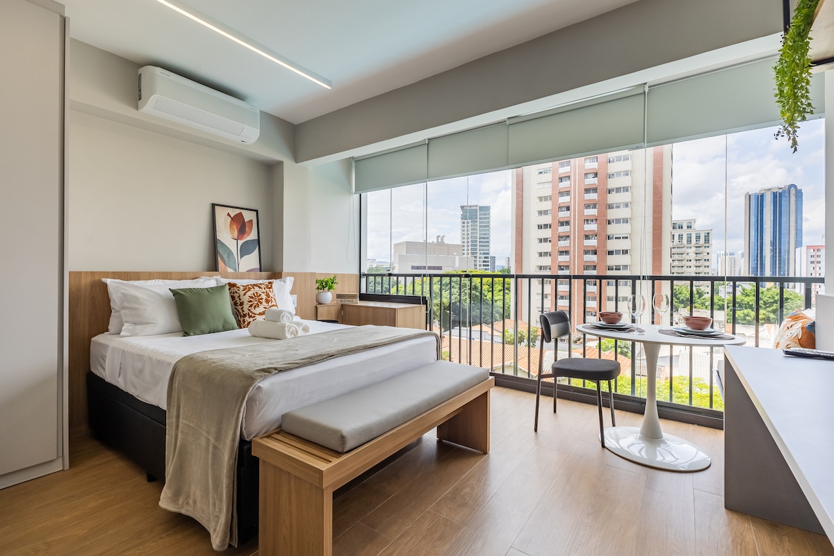 Welcome and make yourselves at home. The apartment is brand new, designed especially for you and has impeccable decor, very practical for everyday life. The view is spectacular! The apartment is on the 28th floor. We are in an excellent location in São Paulo, in the Pinheiros neighborhood, with restaurants, supermarkets and bakeries very close by. It's 40m2 (430 sqft) with 1 bedroom and 1 bathroom. Walking distance from Fradique Coutinho subway station (just 2 blocks).