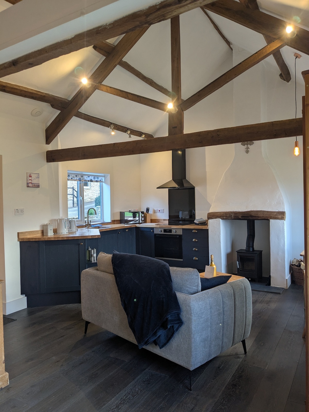 The Barn at Port Farm is a unique and generous studio space. Originally a threshing barn, but recently converted by the owners into a modern space which respectfully retains the character and proportions of the original barn. The eclectic mix of quirky, vintage objects and art give the Barn its unique character. A perfect hideaway for couples looking for something a little out of the ordinary.