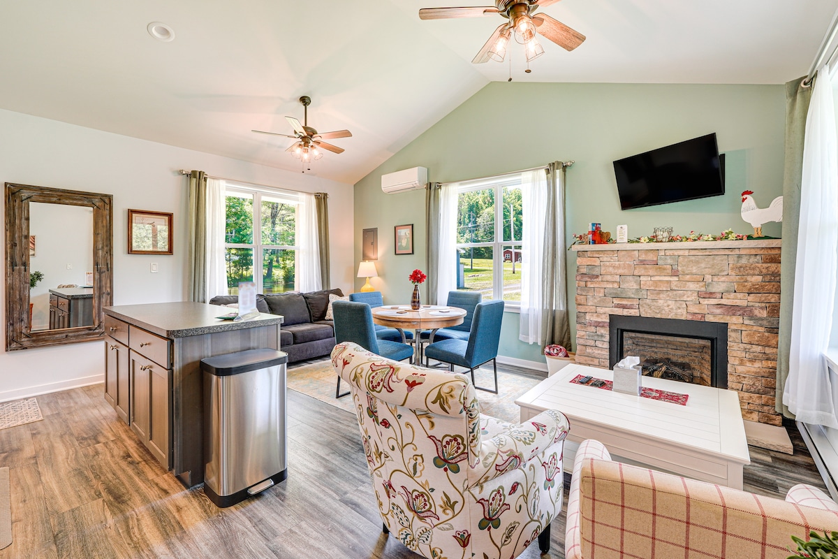 BBQ Ready | Watercraft & Bicycles Provided | 5-Minute Meet & Greet w/ Owner (Check-In) The allure of the Poconos' awaits at this adorable 1-bedroom, 1.5-bath cottage in Brodheadsville! Featuring a furnished porch with quaint pond views, this vacation rental is ideal for those looking to escape the city noise. Nearby dining, breweries, and wineries offer a romantic setting, while boating areas and hiking trails cater to adventure seekers. And don't forget to make s'mores around the fire pit!