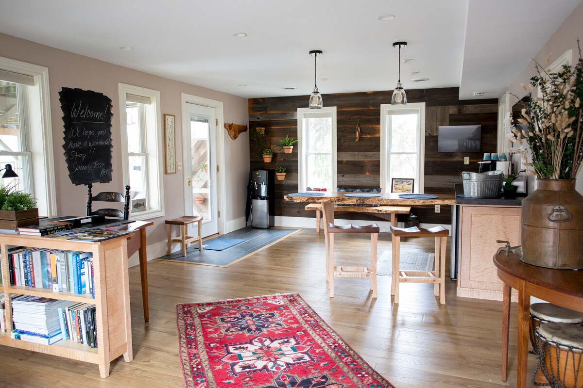Escape to a tranquil, bijou studio retreat under the hemlocks—your perfect getaway. This scent-sensitive-friendly gem features elegant furnishings, quality linens, and an abundance of thoughtful amenities. Sink into a dreamy bed, savour a custom kitchenette, and relax in a serene, modern bathroom oasis. Enjoy the ambiance of the indoor fireplace and private, beautifully designed outdoor spaces. Fast Wi‑Fi, guest parking, and minutes to UMass and Amherst—your restful, boutique escape awaits.