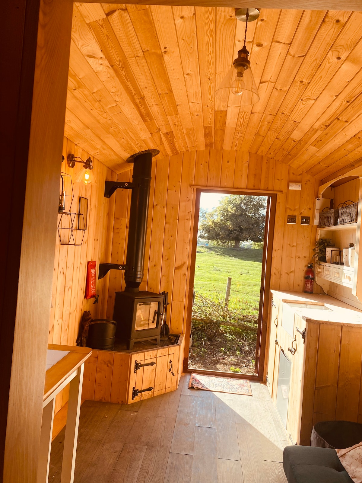 Beautiful, Luxurious, Home from Home Shepherds Hut. Nestling in its own fenced spinney with 300 year old Ash and Oaks trees around you, Little Oaks is rural, isolated and private. You can enjoy the wood fired hot tub, fire pit, BBQ or Pizza oven with only the sheep, goats, horses and chickens on our farm watching. Looking out over rolling countryside, our home built hut is cosy, beautifully appointed, and built to an exacting specification, somewhere we would love to stay!