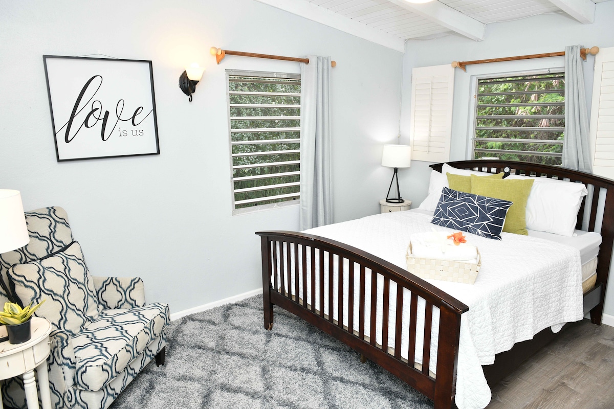 Escape to this stylish, centrally located guest suite on nearly an acre of tropical land with whispering palms and fruit trees. This newly renovated studio includes a full kitchen (with jerk seasoning!) and a tranquil shared patio with BBQ. Breathe in the Caribbean breeze, relax under the stars, and enjoy our 420-friendly property—just no smoking indoors, please. Perfect for couples, solo travelers, or anyone seeking peace, comfort, and an authentic island vibe.