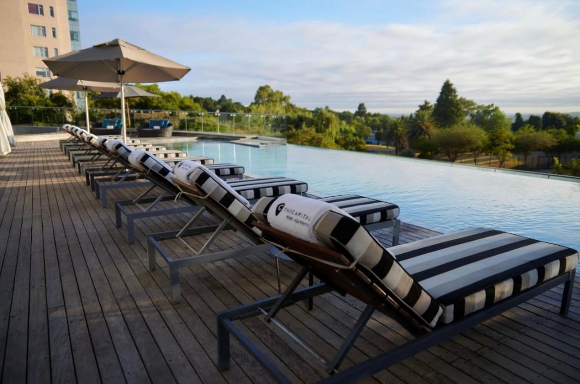 Modern hotel apartment located in the heart of Sandton. Experience true hotel-style living with room service, concierge, gym, spa and other amenities. Unwind and relax in the sun by the large rim-flow pool with a cocktail from the bar, or tuck yourself away in the room with Smart TV and binge on Netflix and Amazon prime. Treat yourself to a late buffet breakfast at the restaurant and a day out shopping or a productive day of work with the uncapped Wifi and downstairs meeting rooms.