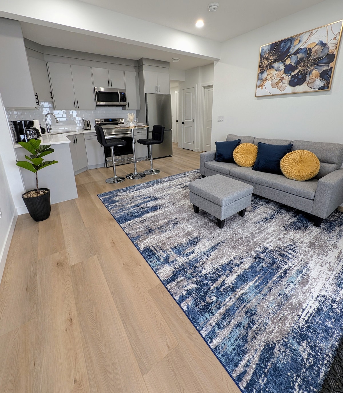 Relax in this calm & minimally styled space. It's One bedroom legal suite basement in Livingston NW, Calgary. Has its own private entrance with a smart lock, a full kitchen, a full bathroom, and in-suite laundry. The bedroom is set up with a workspace just in case you bring work along. Distance: * Calgary International Airport - 16 minutes drive * Crossiron Mills (Calgary's largest outlet mall) - 10 minutes drive * Downtown - 22 minutes drive