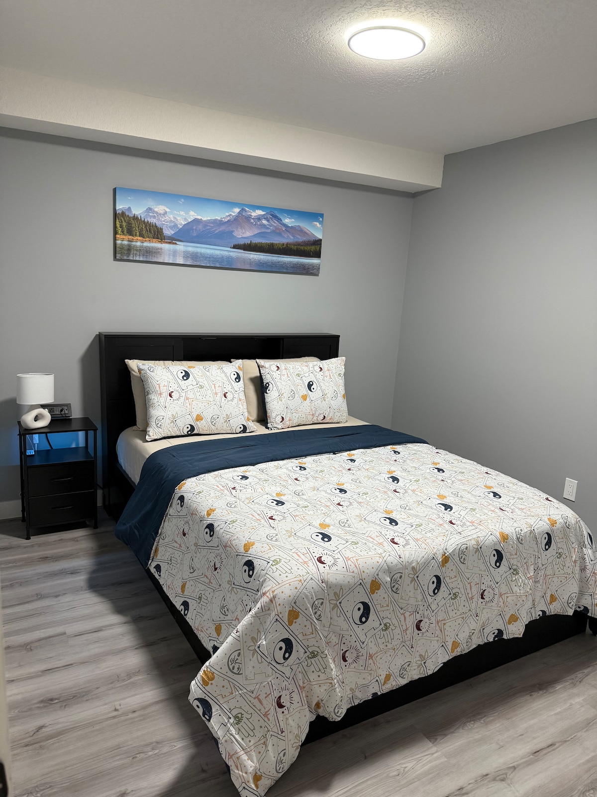 Charming 2-bedroom in NE Calgary (with 2 big Kings bed, separate entry and separate heating) Legal basement suite , 10min drive to Calgary airport, comfortable and Cozy. Spacious home with new modern furnishings, peaceful and family friendly environment. Every guest who stayed here, love it, base on review. Free Parking Space 10 mins to airport 6 min to train station Very close to bus station Close to Malls Enjoy Netflix and Disney Junior Baby crib and rice cooker available Very Fast WiFi
