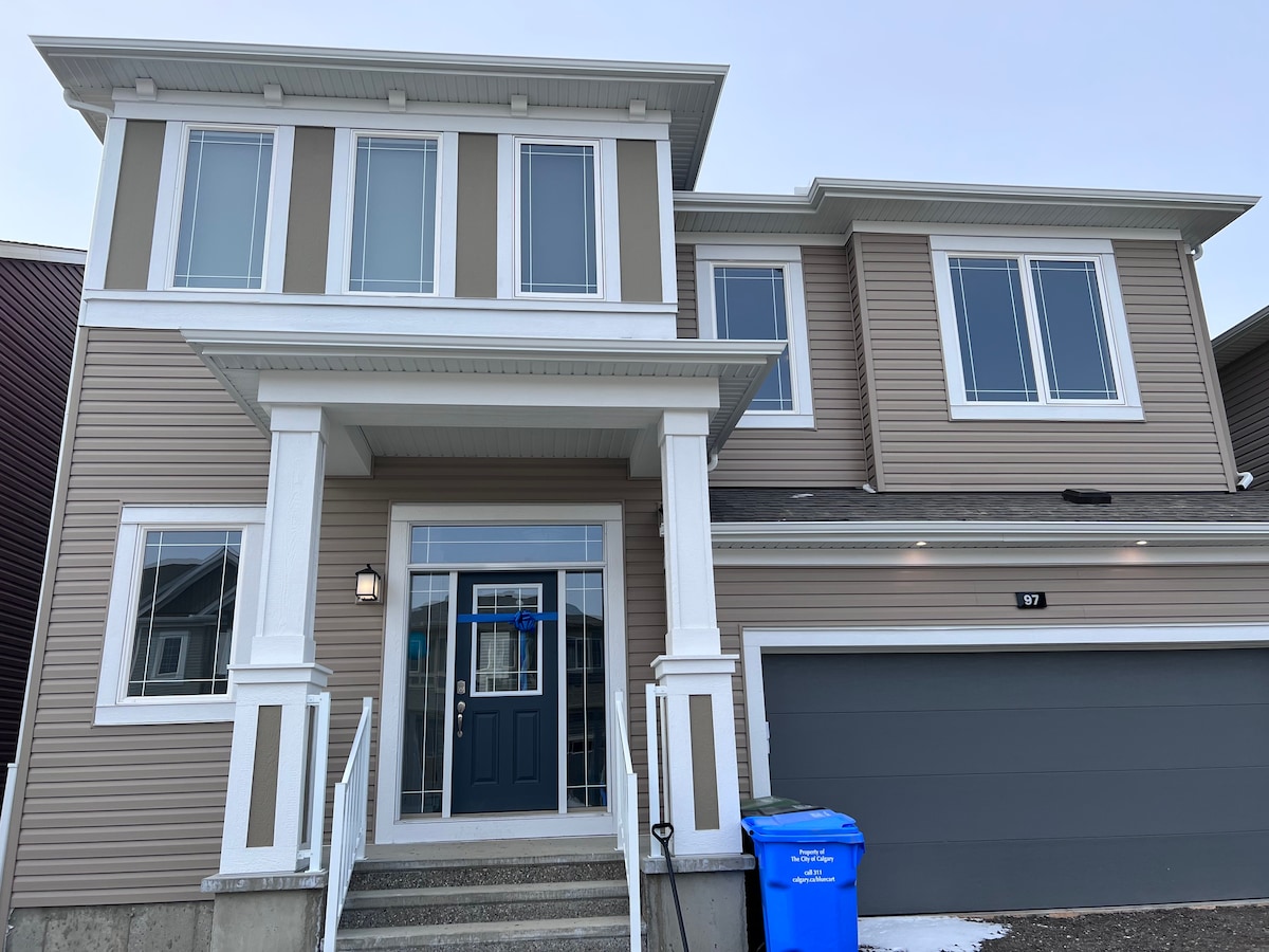 欢迎来到全新的有我们全家的爱的联排别墅,有我们全家对这个小家无限的爱。作为有大家庭出游经验的我们,用心布置的家庭房给小家庭舒适的旅行体验,双人房和大床房让四口之家也有足够宽敞明亮的空间。特别为夏日新装的中央空调+智能电视+Netflix 会员。值得一提的是我们的联排别墅位置超级棒,15分钟车程内可以到达卡尔加里国际机场,以及最著名的购物中心CROSSIRON MALL,COSTCO, 步行五分钟之内有McDonald's , Starbucks, Timhortons, 最具有竞争力的Nofrills 平价超市。注意:这个温暖的联排别墅距离令全世界都喜欢的班服国家公园(Banff national park)仅一个半小时车程,更是可以去看让人沉醉的路易斯湖, Hoodoos Trail Head, Bow Falls viewpoint....各处美妙绝伦的大自然的风景