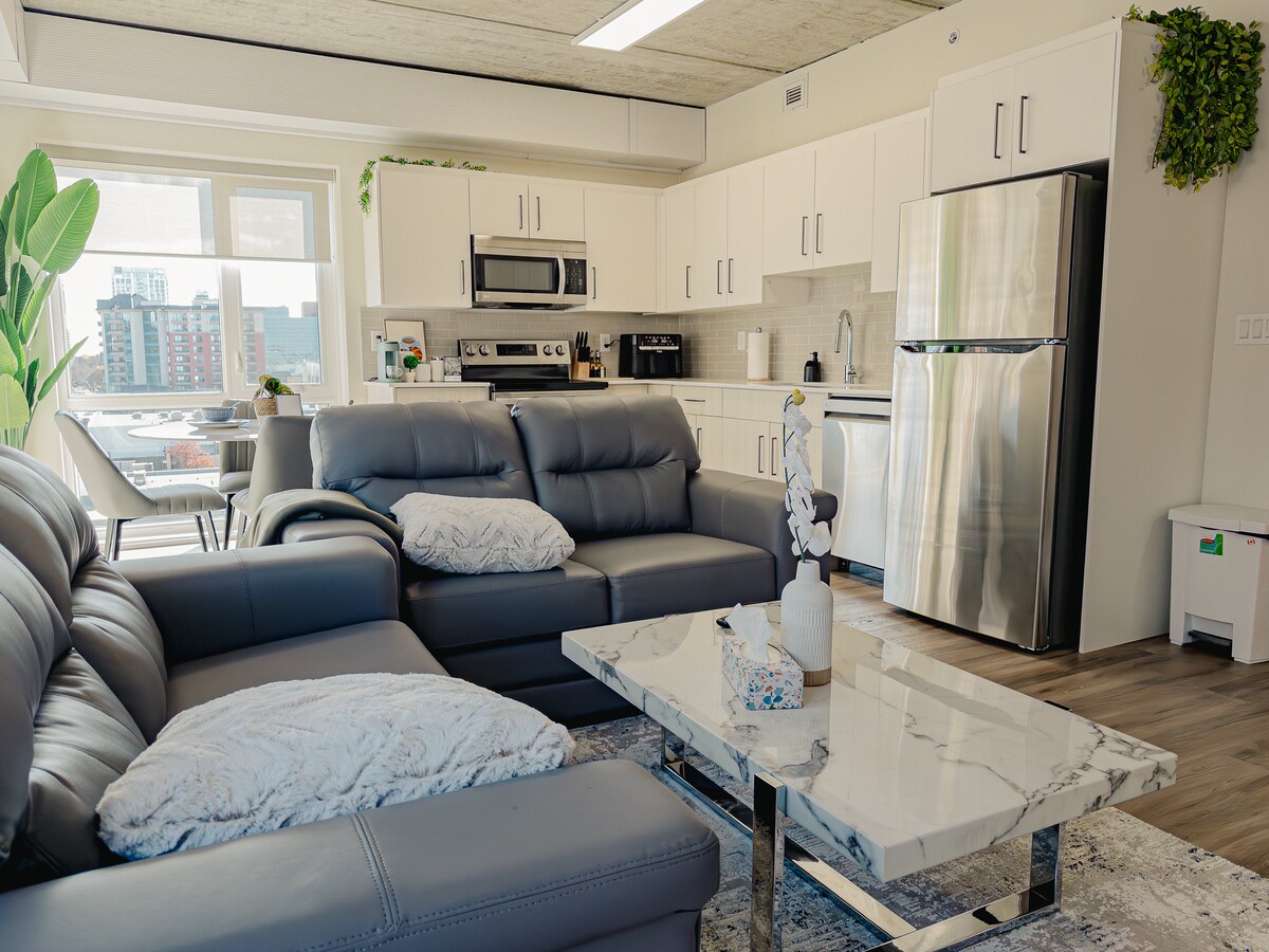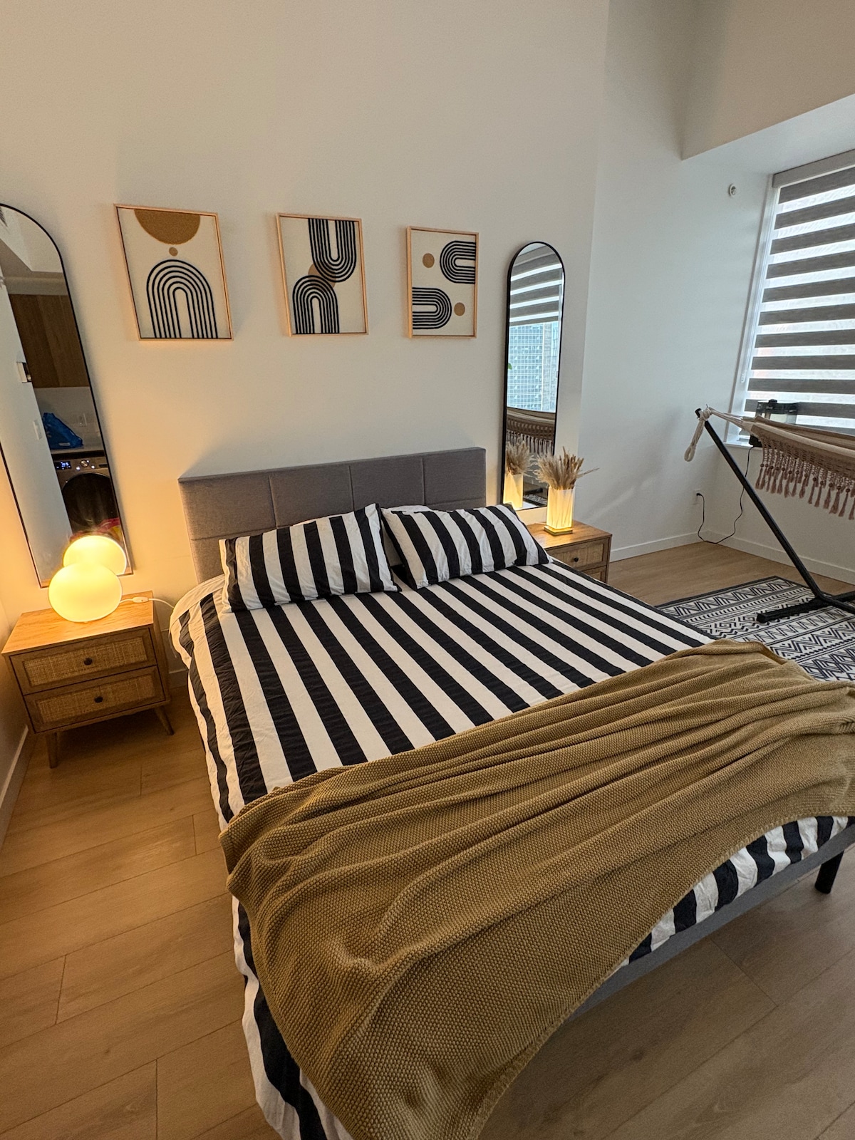 Experience Downtown Living With Unmatched Views! ✔ 5-minute Walk From Rogers Place ✔ Boho Inspired Decor ✔ Secure Underground Parking ✔ Fully Stocked Kitchen ✔ 1 King Bed ✔ Fast WiFi ✔ On-Site Gym ✔ In-Suite Laundry ✔ 55" Smart TV ✔ Close To The Best Restaurants & Nightlife ✔ Outdoor Seating Area With BBQs ✔ Lounge/Event Room Available In The Building ✔ Tons Of Natural Lighting ✔ Complimentary Coffee ✔ Complimentary Shampoos ✔ Blinds On Each Window