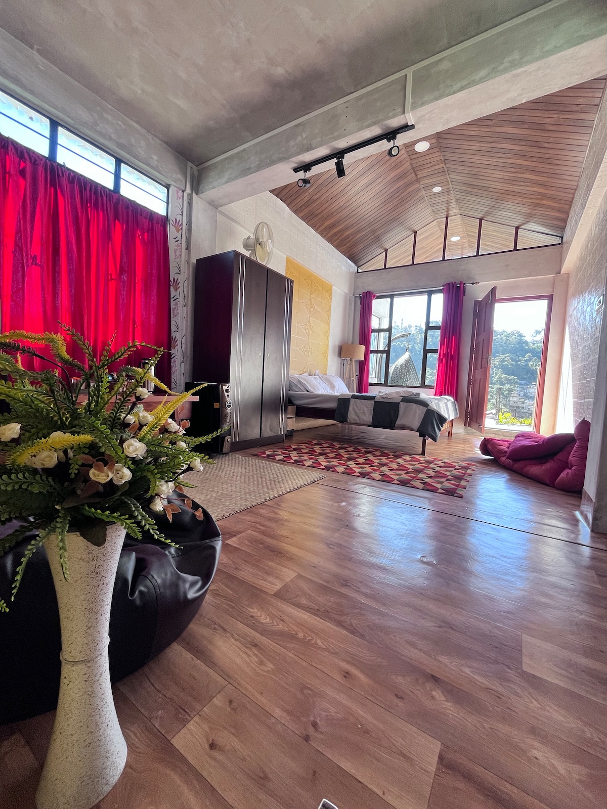 Enjoy the charm of staying at a luxury homestay, attached to Bongaigaon's chillest rooftop cafe and pizzeria - the oldest wood-fired pizzeria in Assam. Newly renovated air-conditioned room, with a queen-sized bed and a separate single bed, can comfortably accommodate 3 adults. Private functional kitchen. Private Bathroom. Food (breakfast, lunch, dinner) available on pre-order, apart from the standard cafe menu. Motorbikes on hire at the garage downstairs.