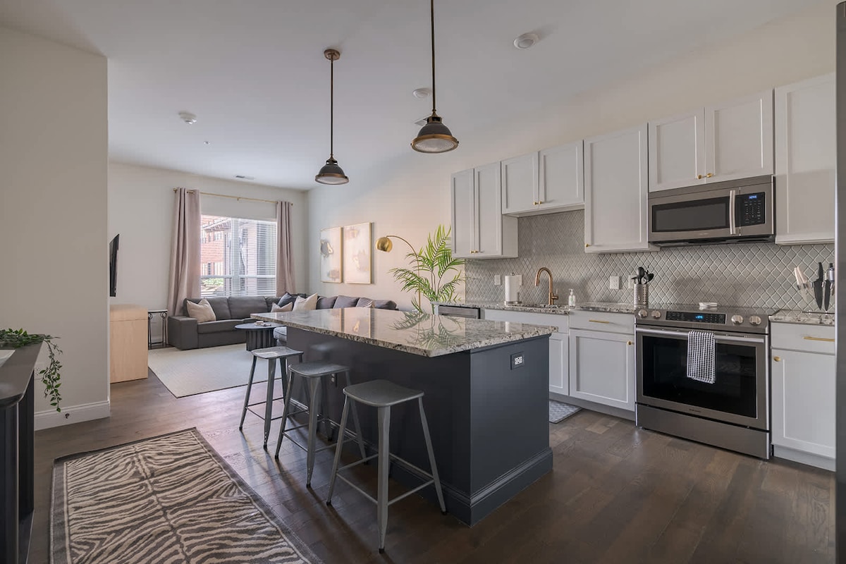 Discover modern luxury in this spacious 2-bedroom apartment in the heart of the Short North Arts District. Enjoy a fully equipped kitchen, cozy living area, and in-unit laundry. Both bedrooms feature premium bedding for a restful stay. Explore top dining, shopping, and nightlife just steps away. Access building amenities like a fitness center and secure parking for ultimate convenience. Perfect for both work and leisure, this stylish apartment is your ideal Columbus getaway!