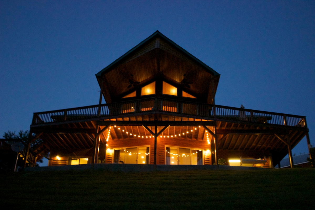 Drive back the 1/2 mile lane to one of the most unique luxury log homes in the country. Uphill lodge was constructed from Yellowstone National Park timbers, salvaged from the infamous 1988 Great Fire. Enjoy the new hottub, 80+windows with spectacular views, massive Arizona Quartz Stone fireplace, private walking trails on our 12 acres, large sledding hill, huge master suite, large gameroom in the basement, and outdoor firepit. Near Amish country shopping/dining/orchards and golf. See you soon!