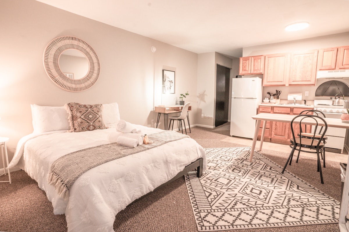 哥伦布市中心漂亮的粉色和灰色1卧室套房
