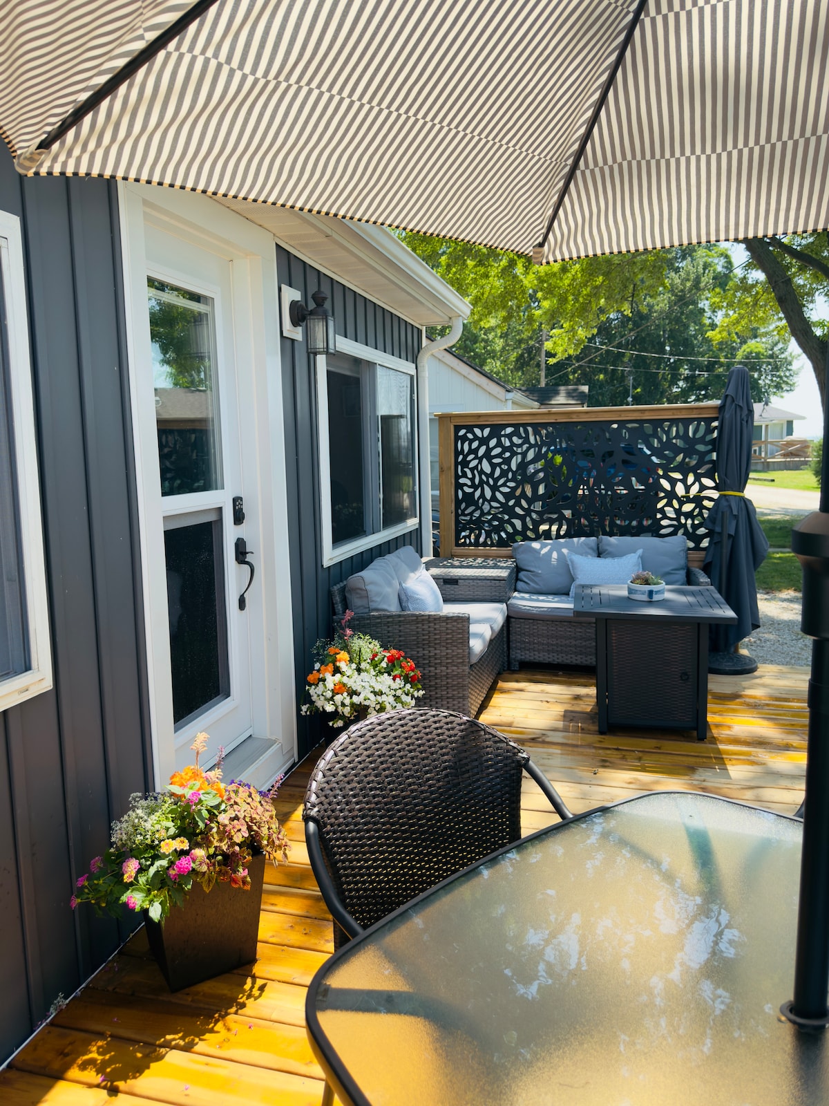 带户外座椅的袖珍小屋