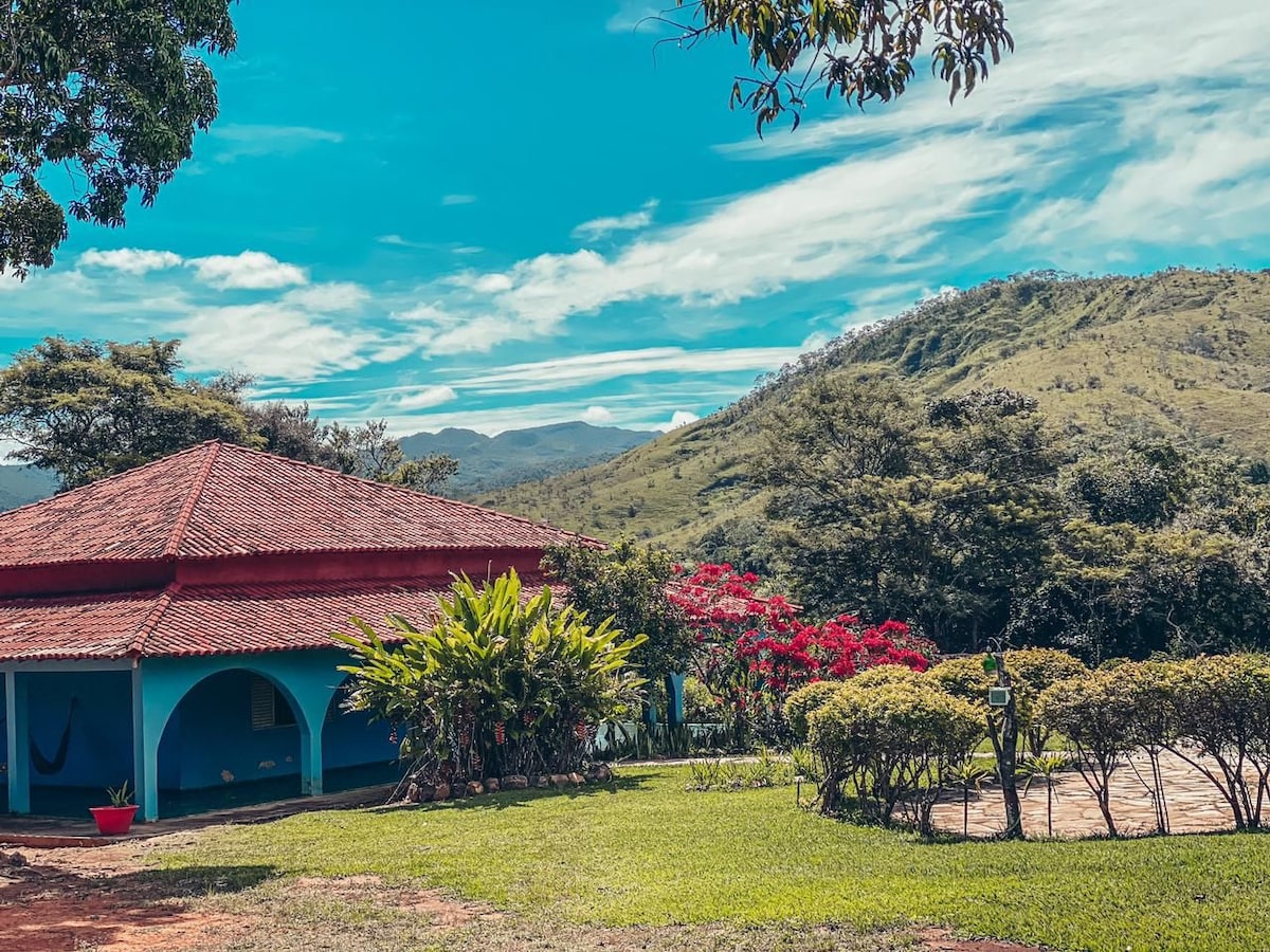 Bem vindos a essa jóia escondida em um dos cantos mais belos da cidade de Alto Paraiso. Aqui você vai experimentar uma imersão no Cerrado como nunca imaginou. Rodeada de natureza, com vista para um dos vales da Chapada que vai te surpreender desde o nascer do sol quanto ao despertar da Lua ao anoitecer. As estrelas a noite, as araras ao entardecer e os tucanos sobrevoando a propriedade serão pontos altos durante sua estadia por aqui. *Casa privada p/ até 4 P *piscina natural no condomínio