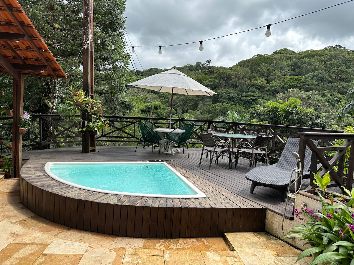 Aqui você acordará ao som dos pássaros e do vento na copa das árvores. Vai caminhar na floresta,tomar banho de cachoeira,de lagoa e se preferir,mergulhar no mar. Praticar Yoga,receber massagem,observar pássaros. É só agendar! Perfeito para casais,amigos,familia ou mesmo só. Na cozinha equipada poderá preparar suas refeições. Nossas galinhas põem ovos fresquinhos para o café da manhã. Da varanda curtirá a natureza tomando um vinho ou um chá e se der sorte da lua estar cheia vai se deslumbrar