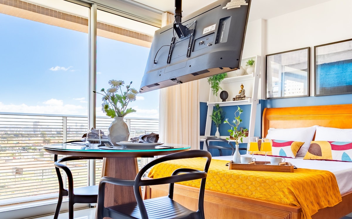 StudioK é mas do que uma hospedagem, é experiência! O StudioK não é feita só de paredes, é feita de escuta, flexibilidade, de afeto em forma de espaço. Criamos cenários perfeitos para pedidos de casamento e namoro. Em condomínio moderno, destaca-se pela localização privilegiada dentro do DF Plaza Shopping (Águas Claras-DF), de fácil acesso a qualquer ponto: Aeroporto, Metrô, Centro de Brasília. No 6° andar, com vista da cidade e a melhor estrutura de lazer e segurança para sua estada.