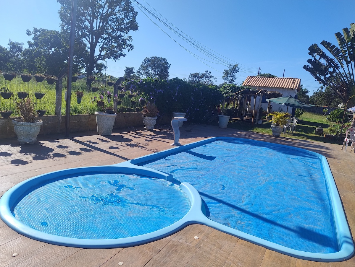 Entre no embalo dos sons da natureza ao ficar neste lugar único! Chácara localizada no condomínio Euler Paranhos, Itapoã, fica a 20 minutos do plano piloto(Brasília DF), asfalto até a entrada.Venha desfrutar com a sua família desse lugar incrível, calmo, totalmente seguro e confortável. Temos 3 suítes com camas de casal e uma de solteiro em cada quarto.Uma das suítes com cama auxiliar Além disso, temos colchões. Todas as suítes com ventilador e chuveiro elétrico. Não permitimos som automotivo!!