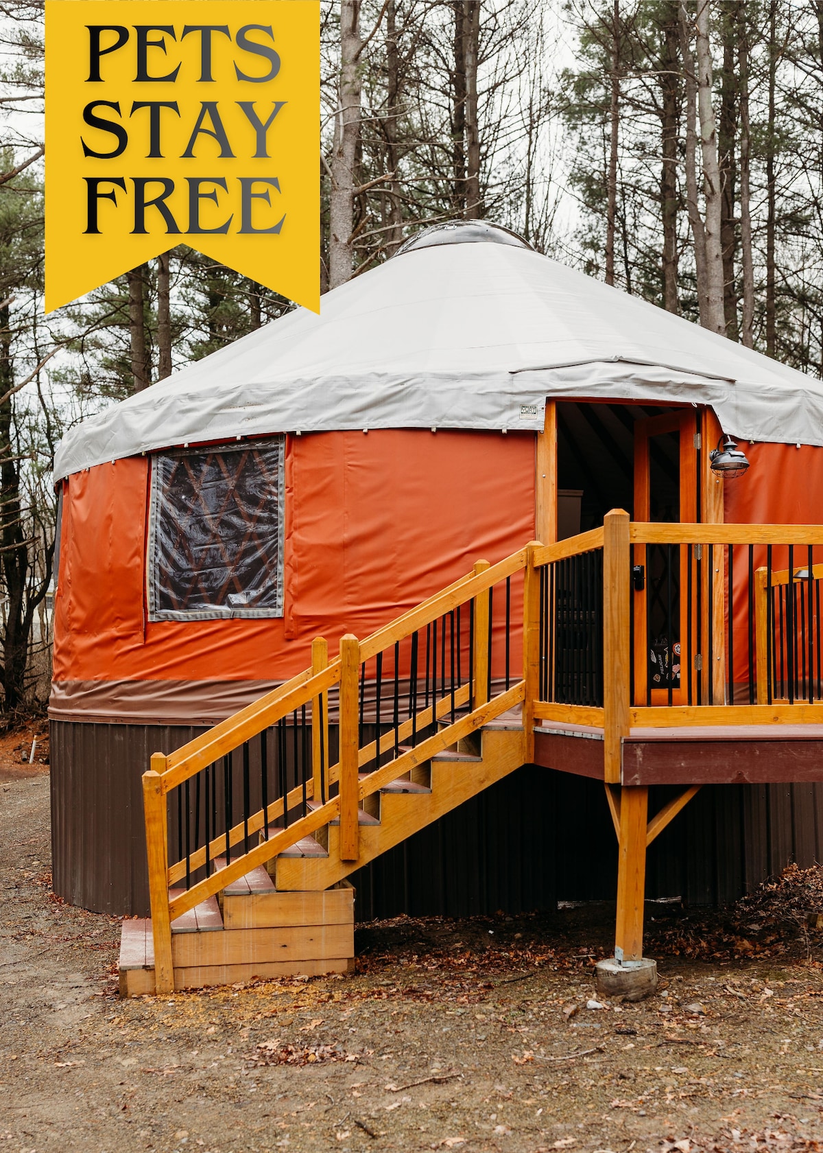 The Yurt In The Woods is 30 ft in diameter - 700 spacious sq. ft. It's surrounded by trees and has a yard. 2 night stays required for Weekends. October 6th and 12th are currently vacant if you want a fall foliage trip. There is a "one" night stay fee of $50 Allowed 2 dogs with the agreement to my animal policy & $50 fee WiFi 1,000 megabits per second a fiber network Outdoor Gas Grill , Outdoor Fire Circle, and Outdoor Shower available May - October