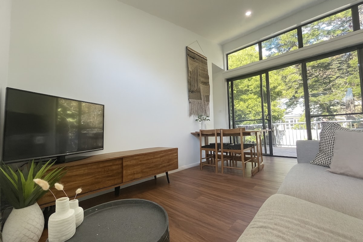 This modern beach house sits in the number one position at Palmy. Just a few seconds walk to the Ferry wharf and calm beach where you can swim from sunrise to sunset. Less than a minutes walk to Barrenjoey House, cafes, convenience store, children's playground and fish and chips! A short stroll to the surf beach, The Boat House, bottle shop, golf course...this open plan beach house has access to it all. Holiday, work, wedding, hide your car keys and relax!