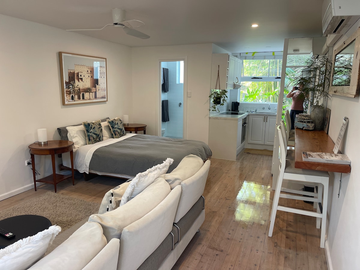 Wake up to views of local beaches a 4 minute stroll away. Welcome to our peaceful, recently decorated, self contained Guesthouse, in the picturesque Northern Beaches. Conveniently located a walk or short drive to lakes, parks, shopping centre, cafes and restaurants. Very close to public transport. Kitchenette for all your needs. Huge bathroom with lots of storage and products. Quiet spot to read or work with fast, efficient internet. Relax with your own smart TV. Cool in summer, cosy in winter
