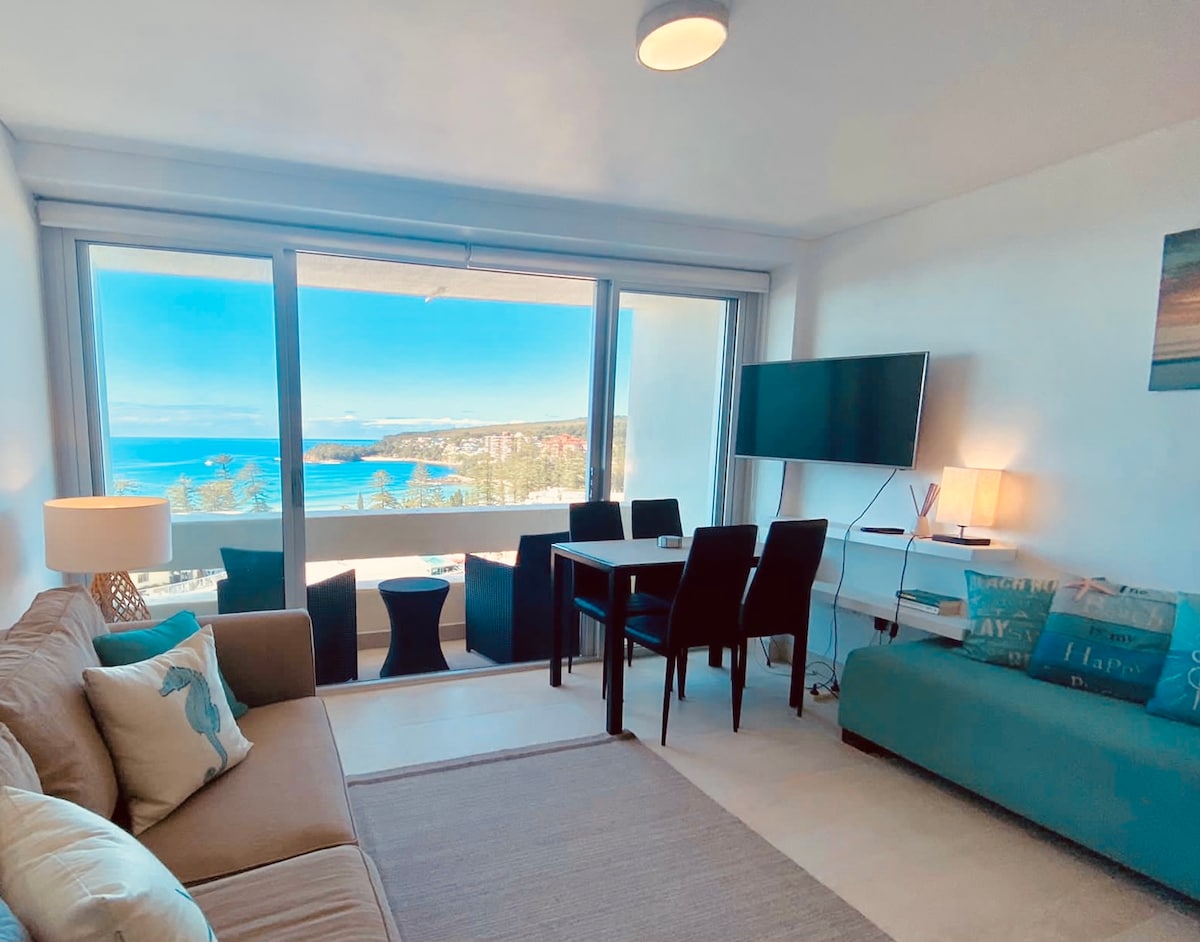 Self contained apartment + balcony on high floor with panoramic beach and ocean views. Air con provided in summer. Central location- 3 minutes to the beach and Corso (shopping/restaurant strip), 7 minutes to wharf with fast ferry to the city. Stunning coastal walks in all directions and water activities at your doorstep. Huge choice of cafes, pubs, restaurants, shops, markets and Manly's attractions all within walking distance.