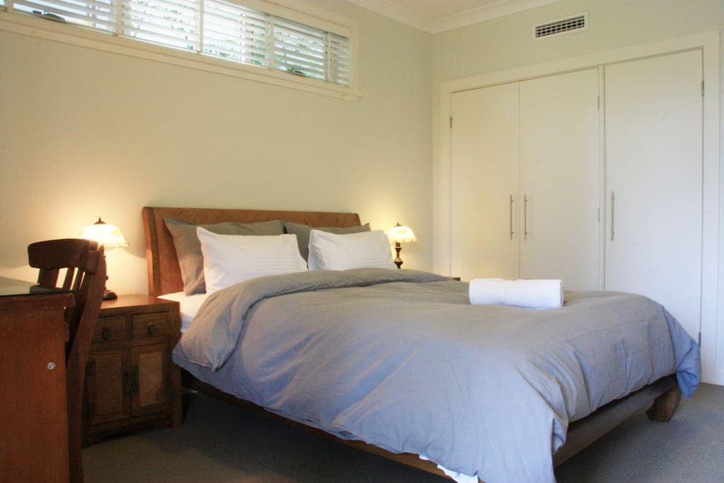 Situated on the Lane Cove Golf Course, this cozy room with King -size bed & wardrobe is private, lockable ,aircon and use of kitchen /laundry ,outdoor deck and garden. It's a few minute's walk to the shops, restaurants and bus stop (12min to CBD by bus).
