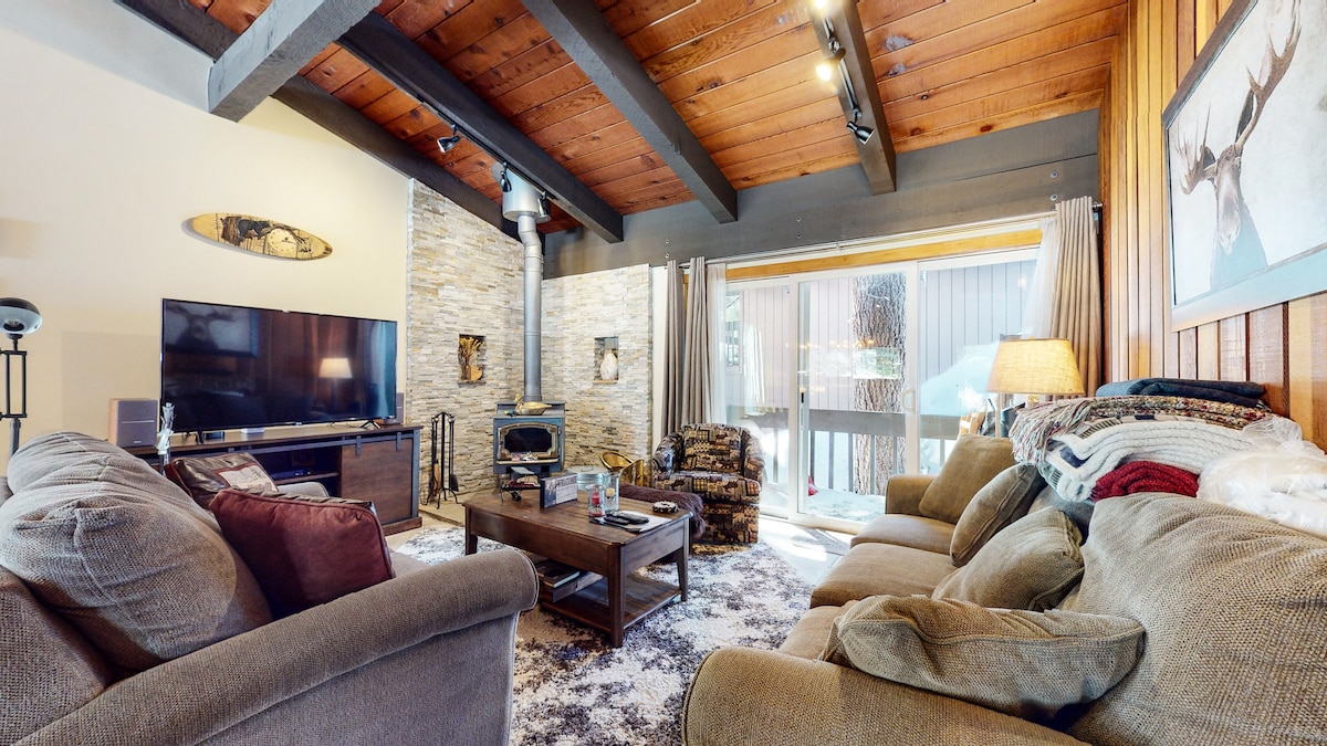 Featured by Sunset Magazine as a “chic escape.” Inside, mid-century furniture and architectural details are made of natural materials like wood and stone setting a calming, sanctuary tone throughout. Curl up with a good read by the light streaming through floor to ceiling windows and under soaring wooden beams or tuck in for the evening by closing the sliding doors inspired by Japanese screens. Please note that during the winter months, our 1960s artistically unique treehouse may get chilly. H