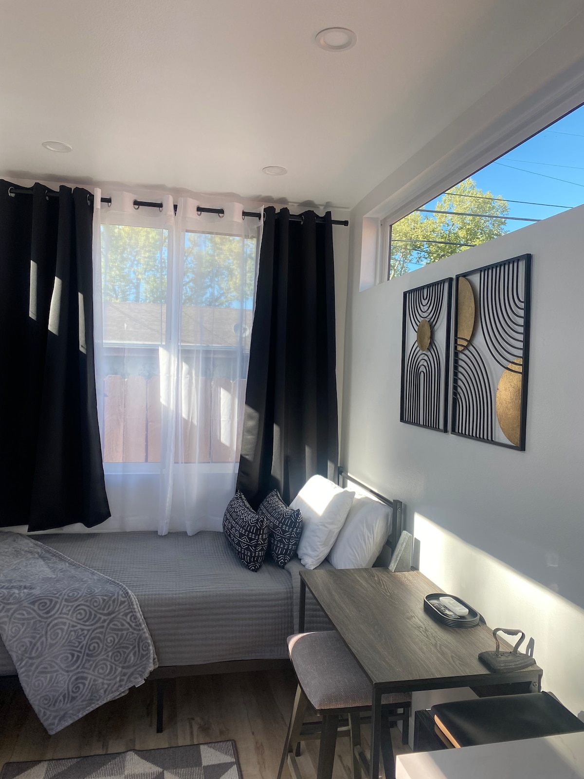 This memorable place is anything but ordinary. High Ceilings, modern fresh decor add to the appeal. Cozy Shipping Container named CeeCee is modern. Near restaurants, grocery, pharmacies, downtown Vallejo, freeways, and public transportation. SF Ferry, Napa, Sutter and Kaiser hospital, Benicia, and Six Flags Amusement Park. Located behind a security fence, and easy self check-in. Perfect for singles, traveling nurses, and more. Features a Twin XL bed perfect for 1 person.
