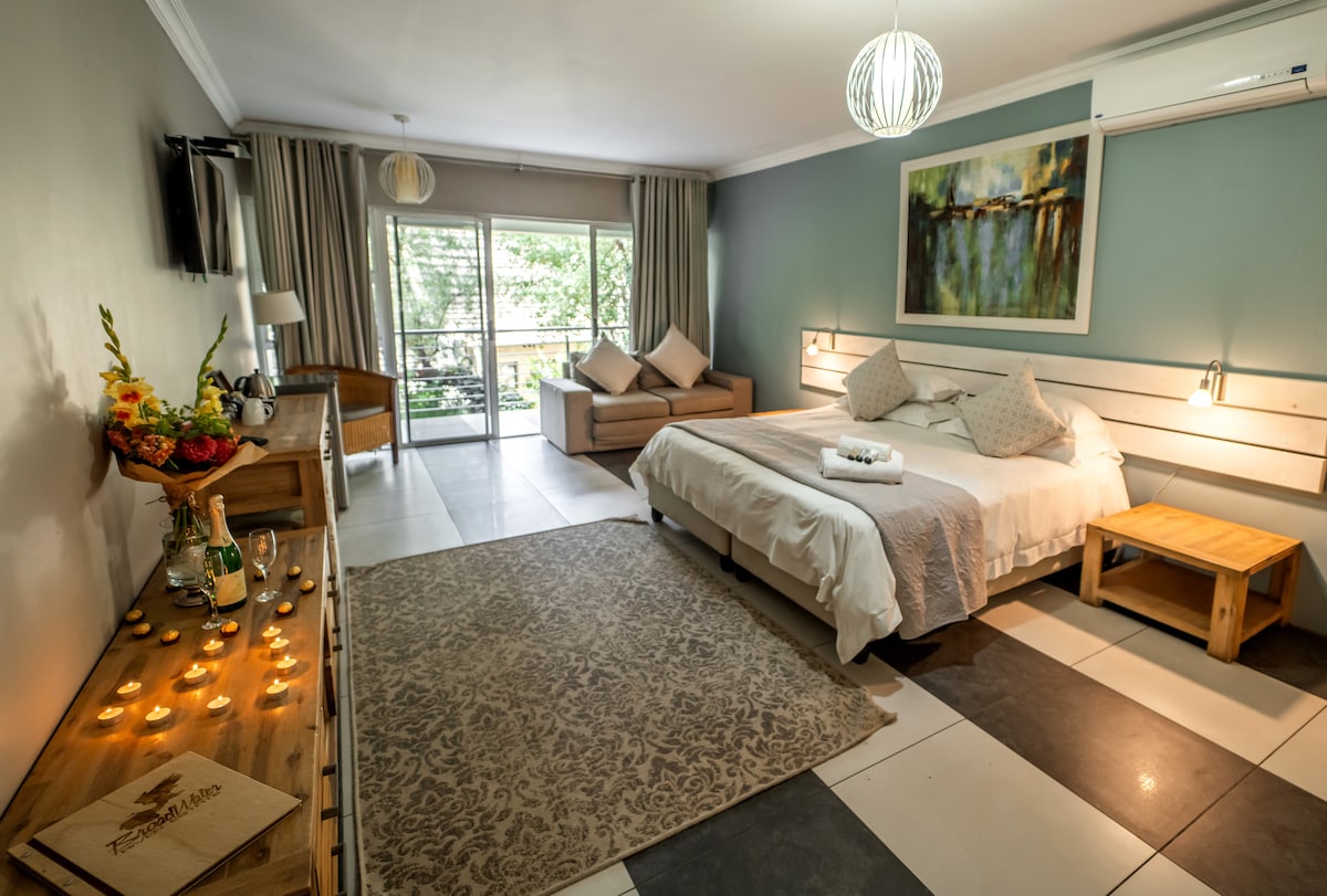 The air-conditioned Luxury Rooms comprise a king-size bed and an en-suite bathroom with a shower, toilet and basin. The rooms feature a TV with DStv, complimentary WI-Fi, coffee and tea making facilities.