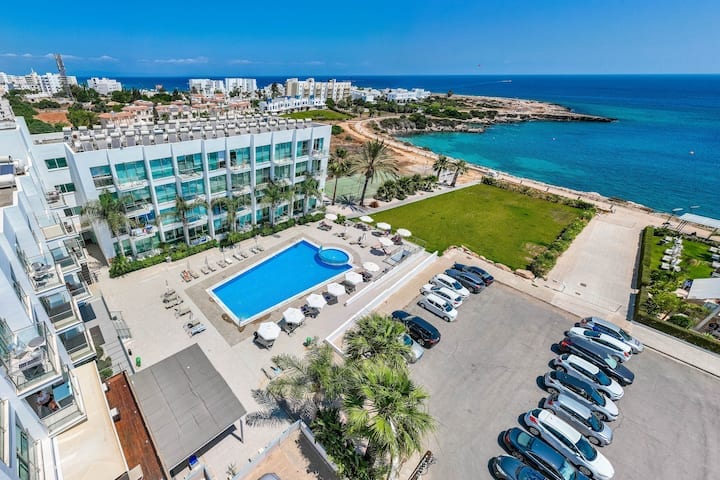 Fabulous one bedroom apartment, right on the beach, with undisrupted seafront views. It's close to watersport facilities, Cyprus Tourism beach, hotels and restaurants. A great way to start your day by waking up to the amazing clear blue waters view. Nice sandy beaches. You'll also find it very convenient as it's approx a 15min drive to the airport, 20min to Ayia Napa, 30min to Nicosia and under an hour to Limassol!