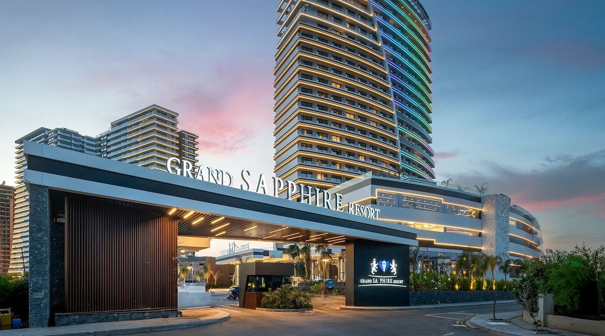 Уютные, стильные апартаменты , расположенные на территории пяти звездочного отеля Grand Sapphire Resort в 3 минутах пешком от побережья Long beach и ресторана Pera. В комплексе имеется собственный бассейн, детская площадка, рестораны и кафе, казино, салон красоты, SPA комплекс, аттракционы для детей, кинотеатр, ночной клуб. Апартаменты оборудованы всем необходимым для комфортного пребывания Возможен трансфер До аэропорта Ларнака 50 мин. До аэропорта Эрджан 45 мин.